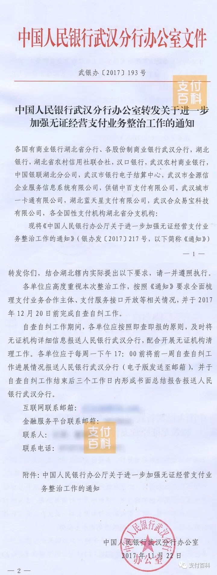 央行昨日发布《无证经营支付业务整治工作通知》,人行武汉分行紧急跟进,已将央妈的意思下达给各支付机构,并要求各单位自查自纠,全面梳理支付业务合作主体,支付服务接口开放相关情况,配合开展无证机构清理工作,相信各人民银行分支机构也会相继跟进整治通知的进一步部署。